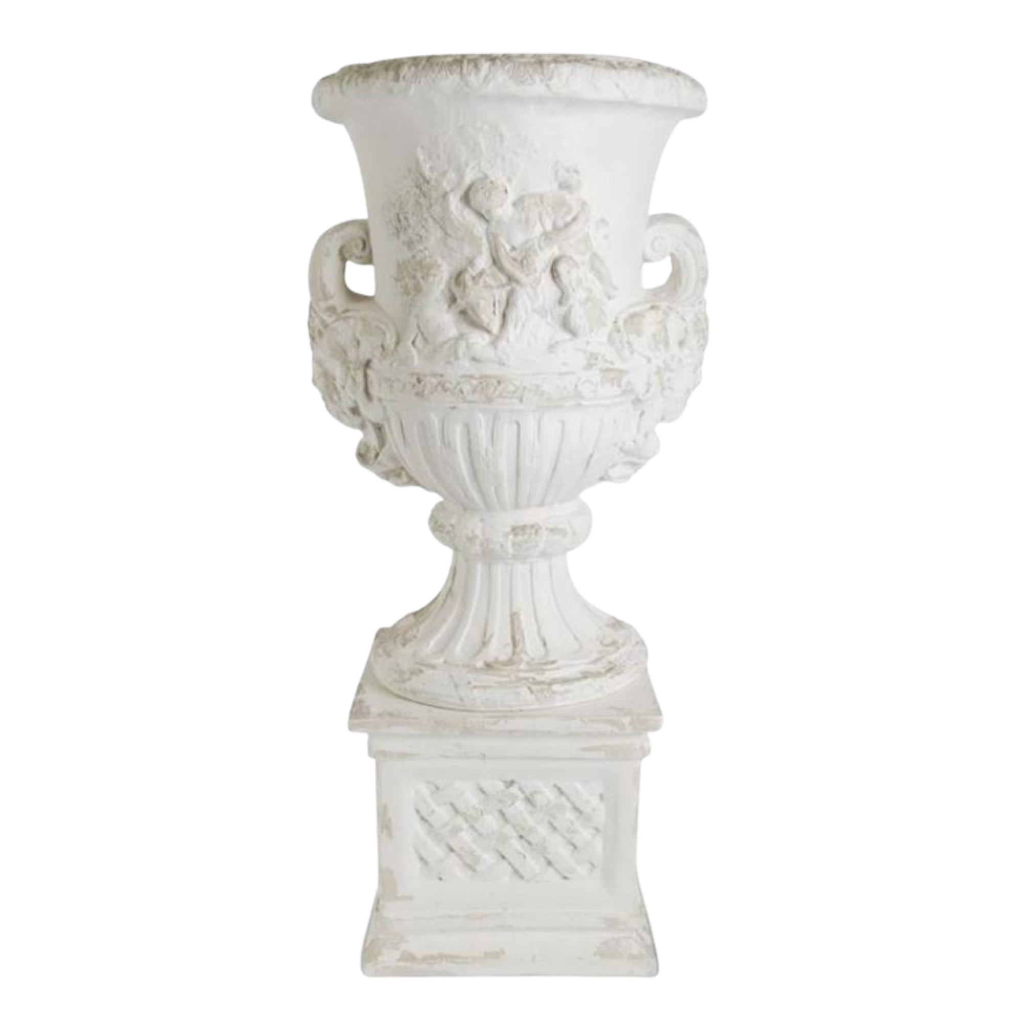 Distressed White Florentine Urn